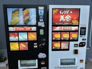右側は地元人気店の「萬金餃子」左側は老舗和菓子屋さんの「とけないアイス・葛バー」。