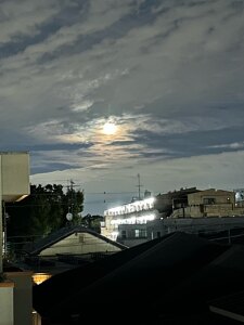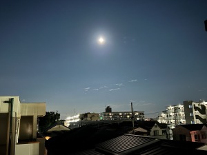 空を見上げると曇りがち...が数時間後スーッと雲が晴れて見事な満月を眺める事ができました。